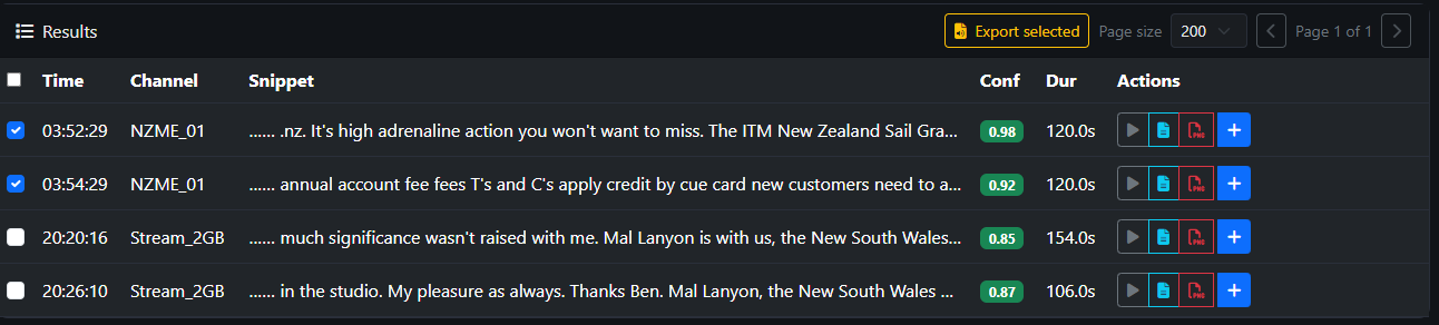 Once you have your search results you can export the transcript to a PDF or export the Audio files