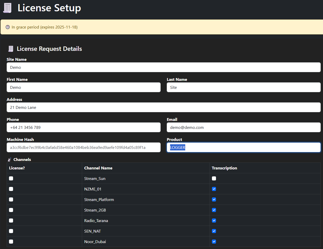You will notice that the first time this is loaded the channel is in a grace period to allow you to trial the system or to have your license refreshed. Once the trial period ends, you will need a license to continue.