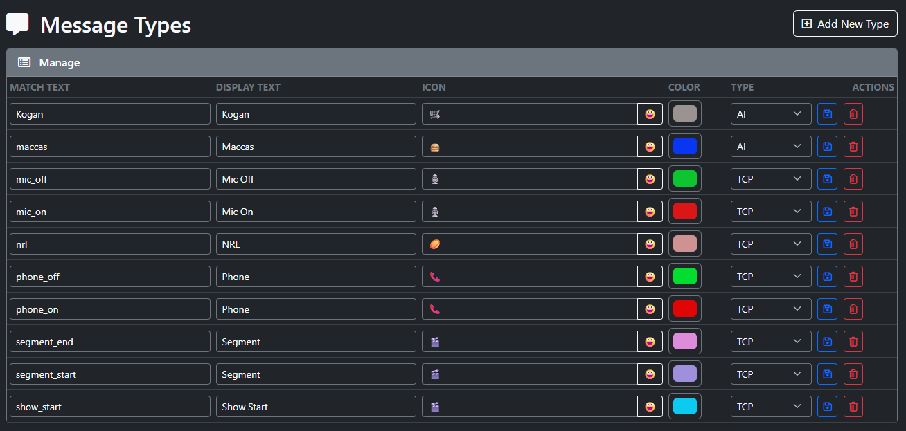 In order to see messages pop up in the timeline you will need to create these, go to Message Types
